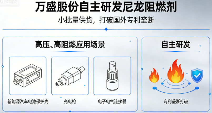 Domestic Substitution Accelerates: Recently, Wansheng revealed that its independently developed nylon flame retardant has achieved small-scale supply, successfully breaking the monopoly of foreign patents. The product mainly targets high-voltage, high-flame-retardant application scenarios such as battery protection shells, charging guns, and electrical and electronic connectors for new energy vehicles.