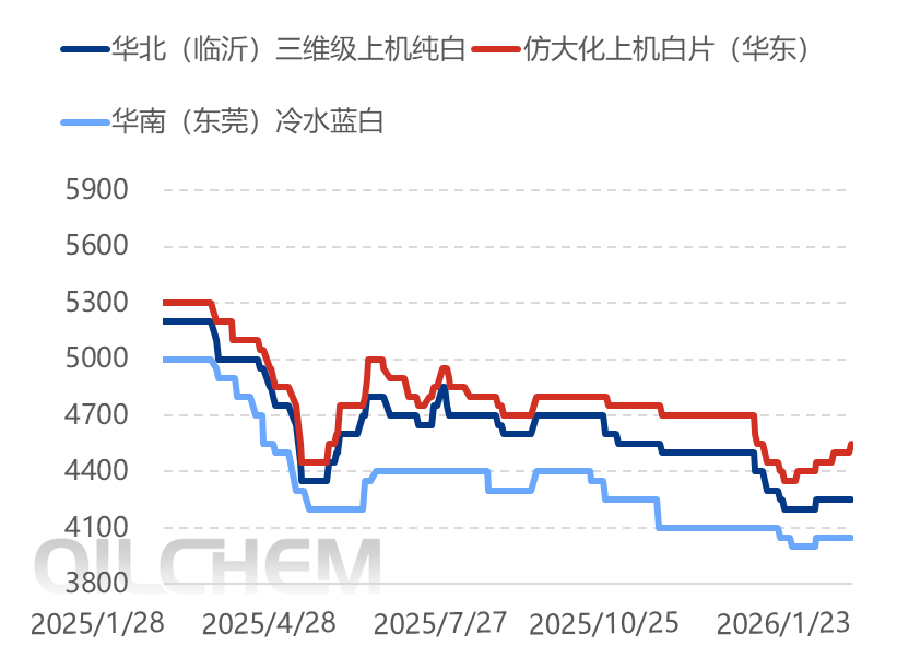 ①、 Today, the mainstream price for pure white net chips of imitation Dahua upper machine in Jiangyin is around 4550 yuan/ton, and the mainstream price for blue and white net chips of imitation Dahua upper machine is 4150 yuan/ton.