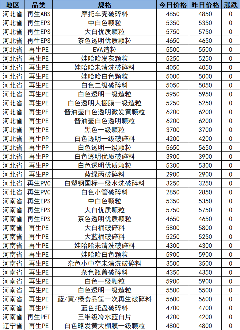 Summary: On March 16, the morning prices of the recycled plastic market in North China! The recycled market in North China is stable, with recycled PE in Hebei reported at 3700-6200 and recycled PP at 2900-5650, and recycled PE in Liaoning reported at 4800. The market is mainly in a range consolidation, with limited support from raw material prices. The downstream demand is for necessary replenishment, and the trading in the market is not good, with few actual transactions.