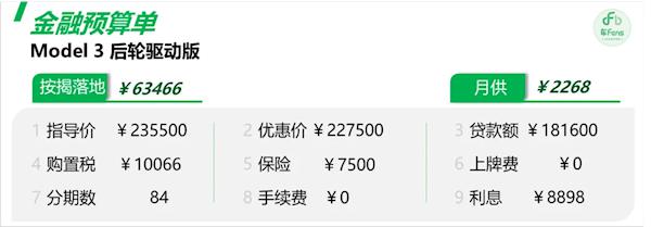 Tesla has launched an industry-first 7-year low-interest loan this month, with an annualized rate as low as 0.7%. For a Model 3 Rear-Wheel Drive priced at 235,500 yuan purchased with a mortgage, the down payment is only 63,466 yuan, the loan amount is 181,600 yuan, the monthly payment is 2,268 yuan, and the total interest over the loan period is 8,898 yuan, significantly lowering the barrier to entry for car ownership.