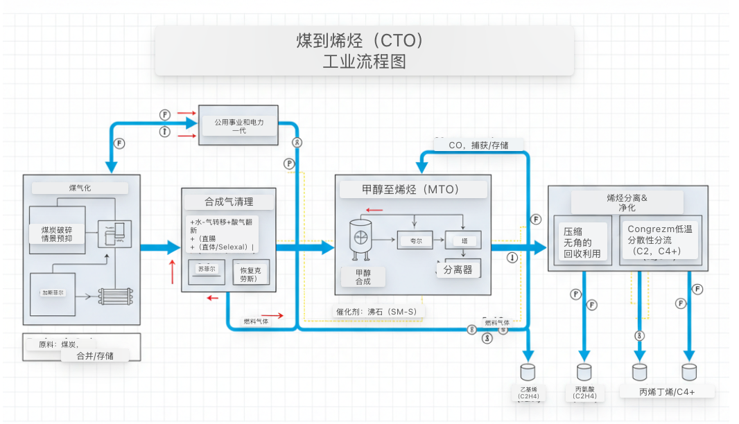 Coal-to-olefins completely overturns this logic. The starting point it chooses is China's most abundant fossil energy resource—coal. The entire process is like a precise chemical relay race.