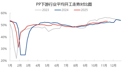 This week, the average operating rate of the domestic polypropylene downstream industry increased by 0.14 percentage points to 53.28%.From the demand side, the concentrated procurement period of previous e-commerce activities has passed, leading to a slowdown in demand for packaging industries such as CPP and woven bags. As the weather turns cooler, the demand for medical and health products such as masks and surgical gowns remains stable. Additionally, there is a rise in new orders for cold-resistant fabrics and seedling fabrics, resulting in a seasonally high demand for PP non-woven fabrics. Furthermore, with the increase in year-end promotional activities, there is noticeable support for automotive materials demand in the modification industry. As packaging and home goods gradually enter the off-season, it is expected that the PP products market will gradually cool down next week, with end-user factories primarily conducting transactions on a just-needed basis and making small orders as needed. The industry's operating rate may experience a slight decline.