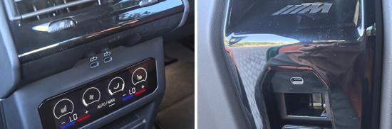 The evaluated vehicle is equipped with a total of 6 USB Type-C ports, which is a considerable number but lacks variety. In the front row, 2 ports are located around the center console cup holder, while in the rear row, 4 ports are situated below the air conditioning vents and on the back of the front seats.