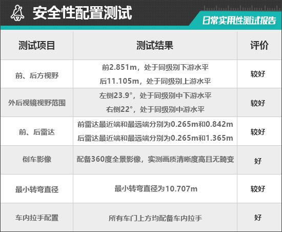 In the front and rear view tests of the vehicle, all seats inside the car have been adjusted to the lowest position. The data obtained has some deviations from normal use by the driver and is for reference only.