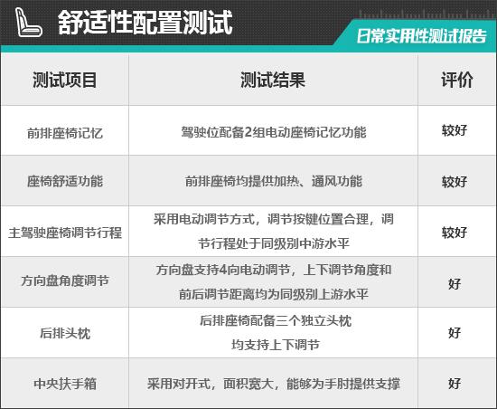 In the driver seat test, the distance between the front and rear ends of the driver's seat reached 245mm, placing it in the mid-range among tested models in the same class, which can meet the needs of the majority of drivers.