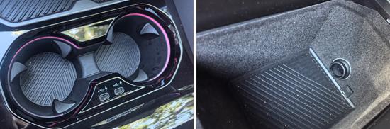 Through practical testing, the evaluation vehicle has a relatively large storage capacity. Except for sunglasses, all items can be placed in suitable positions, demonstrating good storage capability. In addition, the evaluation vehicle also offers 4 cup holders, all equipped with limiters.