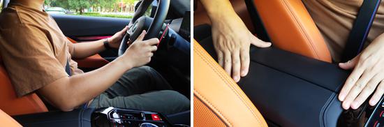 The front center armrest of the test vehicle features a double-opening design and is wrapped in soft materials. It has a large area and a pleasant touch feel. During driving, it effectively supports the driver's elbow.