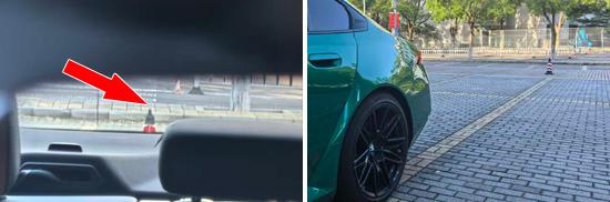 In the rear visibility test, the traffic cones were still fixed in place, and then the vehicle was moved until the top edge of the cones could be observed. The measured distance for the rear visibility of the test vehicle was 11.105 meters, which is at an upper level compared to similar tested models.
