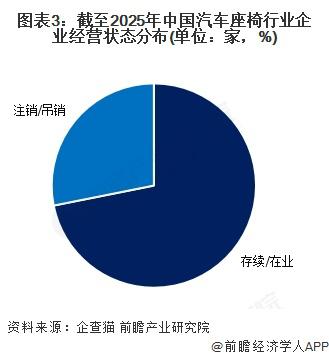 According to the data from Qichamao, as of August 2025, there are 6,412 active enterprises in China's automotive seat industry, accounting for 72% of the total number of enterprises. The number of companies that have been canceled or revoked is 2,511, accounting for 28% of the total. Overall, the business situation of enterprises in China's automotive seat industry is relatively good, with a higher proportion of active/surviving enterprises.