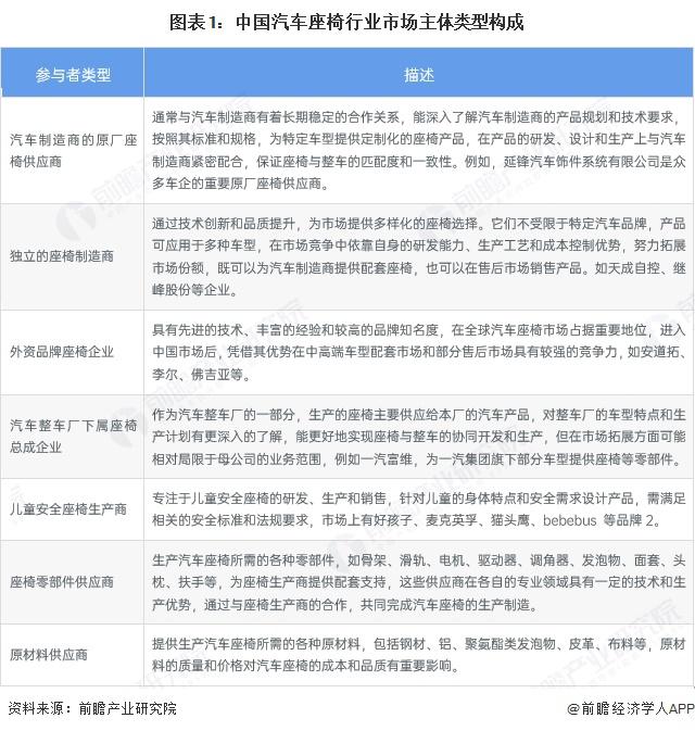 The main types of participants in the Chinese automotive seat market include original equipment manufacturers (OEMs) of seats, independent seat manufacturers, foreign brand seat companies, seat assembly companies affiliated with automobile manufacturers, child safety seat producers, seat component suppliers, and raw material suppliers, among others.