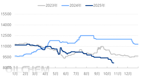 Figure 2: Price Trend Chart of Domestic ABS in Various Regions from 2023 to 2025 (Unit: Yuan/Ton) |