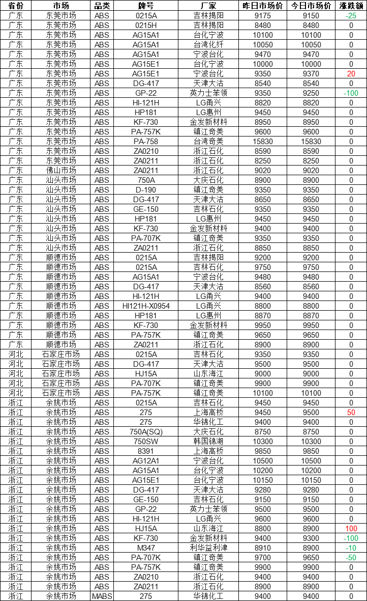 ABS Early Market New Price: ABS Market Steady With A Drop Of Up To 100 Yuan On September 23!