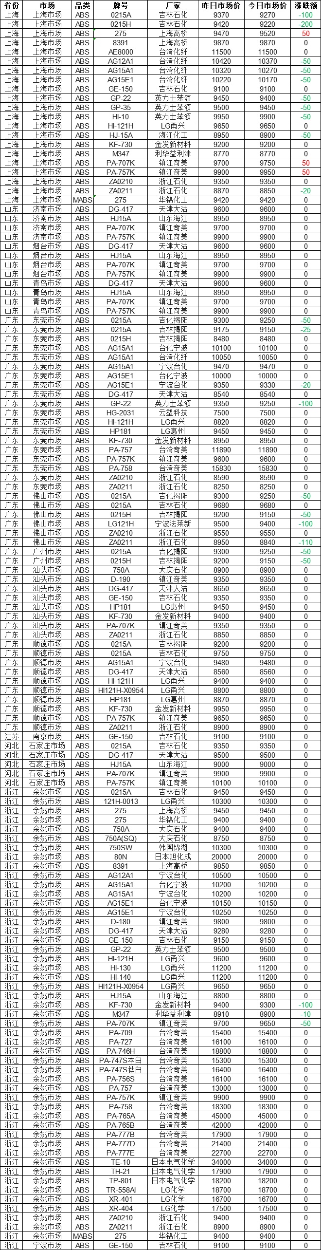 ABS Price Summary: ABS Market Stable to Decline on September 23, with a Maximum Drop of 200 Yuan!