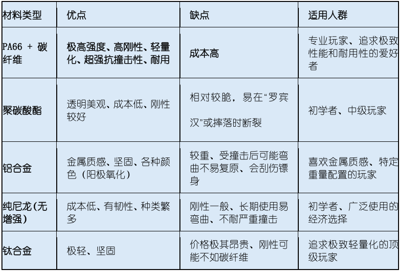 4. Comparison with Other Common Dart Shaft Materials