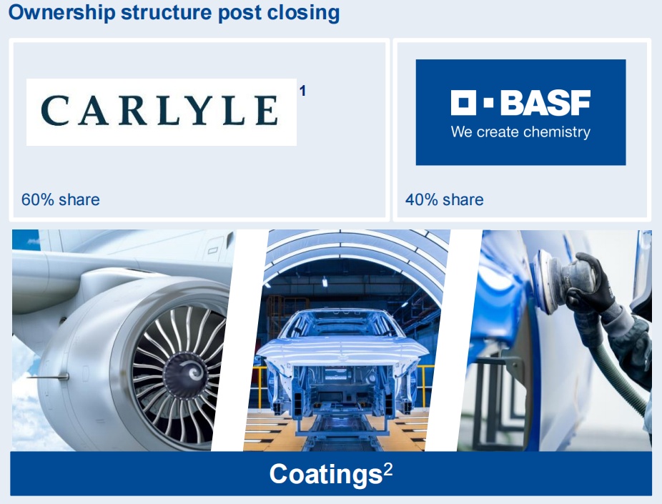 Carlyle will leverage its global industrial and carve-out experience to support the next phase of growth for BASF's coatings business by investing in its commercial capabilities, innovation channels, and organizational structure, enhancing customer focus, and supporting the future development of the business.