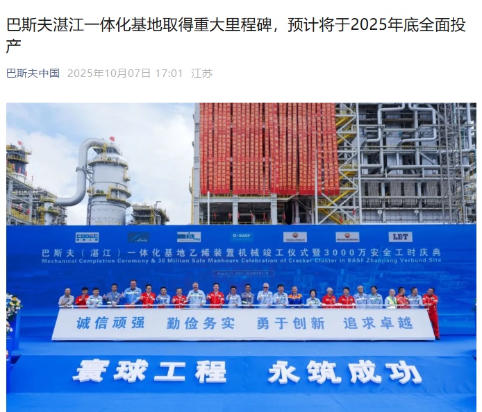 Particularly, BASF's large-scale integrated project in Zhanjiang will be fully operational by the end of this year. Although the current global, especially China's, overcapacity situation was unforeseen and its initial profits may not be optimistic, the adjusted profit target of 1 to 1.2 billion euros by 2030 remains unchanged.