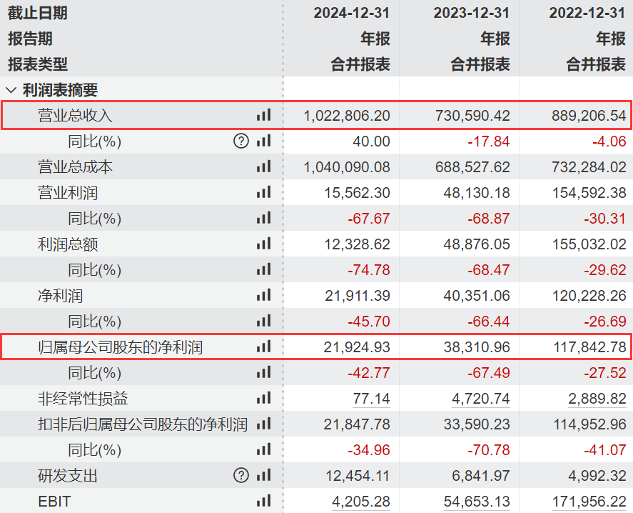 According to financial data, Binhua Co., Ltd. achieved operating revenues of 8.892 billion yuan, 7.306 billion yuan, and 10.228 billion yuan for the years 2022, 2023, and 2024, respectively; the net profits attributable to shareholders were 1.178 billion yuan, 383 million yuan, and 219 million yuan, respectively.
