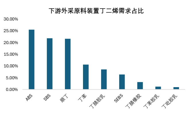 In the downstream of butadiene, ABS, butadiene rubber, SBS, and styrene-butadiene rubber are the four main consumption areas, accounting for a total of 86.45% of the total demand for butadiene. Among these industries, facilities that do not have raw material support are more vulnerable to fluctuations in butadiene prices.