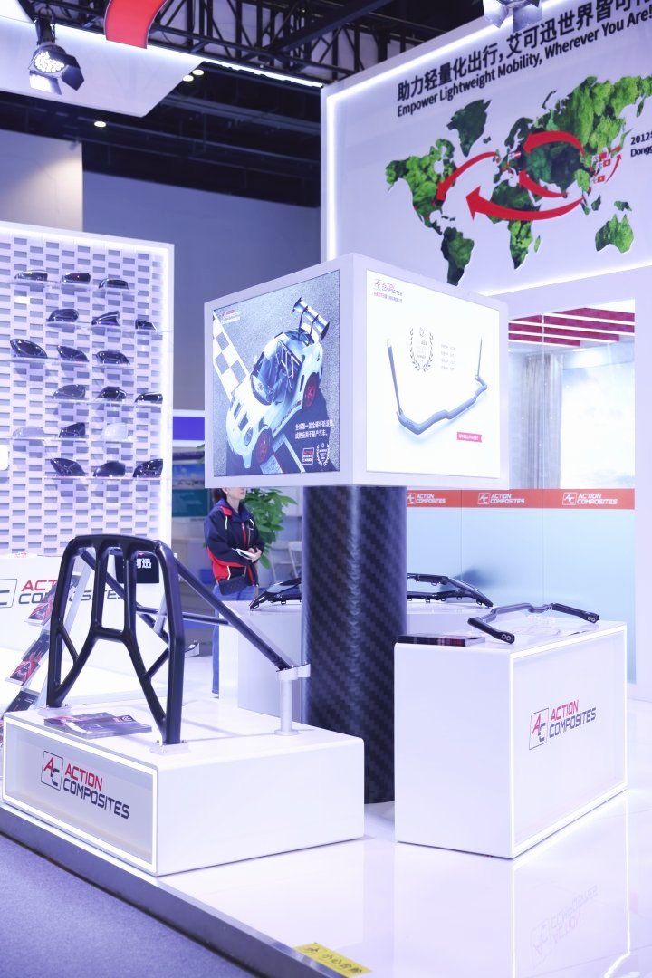 At the 2026 Beijing Auto Show, while the public was immersed in the clamor of complete vehicles and smart technology, the booth of Dongguan Aikexun Composites Co., Ltd. (hereinafter referred to as "Aikexun") presented a series of carbon fiber components quietly - mirror housings, interior panels, roll cages, stabilizers, and wheel hubs. Unassuming, yet quietly triggering a silent materials revolution.