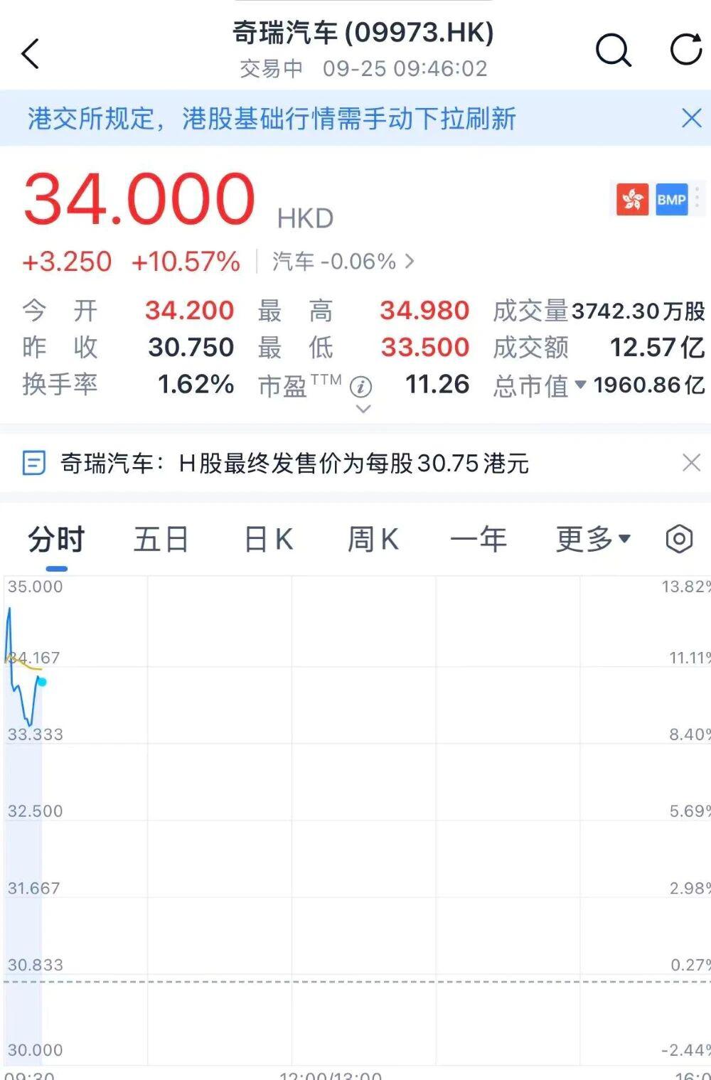 Chery Officially Listed, Opening Surge Of 13%, Market Capitalization Exceeds HKD 200 Billion At One Point