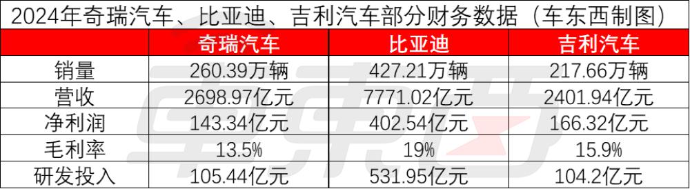 ▲ 2024 financial data of Chery Automobile, BYD, and Geely Automobile