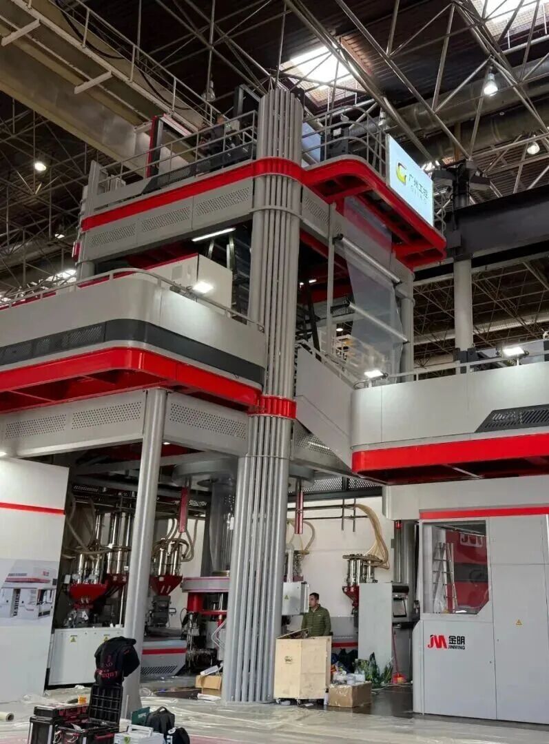 In the field of film blowing machines, Jinming Machinery conducted a live demonstration of its high-output five-layer co-extrusion film blowing unit (M5B-2500Q-S) in Hall 17, which can be considered a "national treasure" in China's plastic machinery sector. It garnered significant attention at the K Show. Its complex technology integration and stable on-site performance attracted considerable attention from global peers, fully showcasing China's manufacturing strength in high-precision plastic processing equipment.