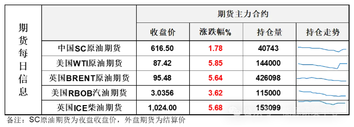 April 20: The second round of U.S.-Iran talks has not been officially confirmed yet. The Strait of Hormuz remains blocked, increasing concerns about supply risks, and international oil prices rose. The NYMEX crude oil futures contract for May rose by $5.76 per barrel to $89.61, an increase of 6.87% from the previous session; the ICE Brent crude oil futures contract for June rose by $5.10 per barrel to $95.48, an increase of 5.64% from the previous session. The China National Energy Administration (INE) crude oil futures contract for June 2026 fell by 31.2 to 605.7 yuan per barrel, and during the night session, it rose by 10.8 to 616.5 yuan per barrel.