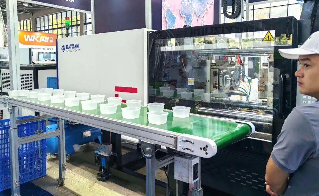 In response to Uzbekistan's fast-food packaging industry's demand for lightweight and high-capacity solutions, Haitian International showcased the Haitian MA2100V/770h, demonstrating the precise molding of 1 out of 2 thin-wall fast-food containers on site. The equipment has been comprehensively upgraded from injection, plasticizing to clamping structure, equipped with intelligent functions and electric pre-plasticizing device, achieving flexible production. With the support of energy-saving technology, it assists local enterprise clients in embracing the comprehensive upgrade of civilian product packaging and gaining a sustainable development advantage.