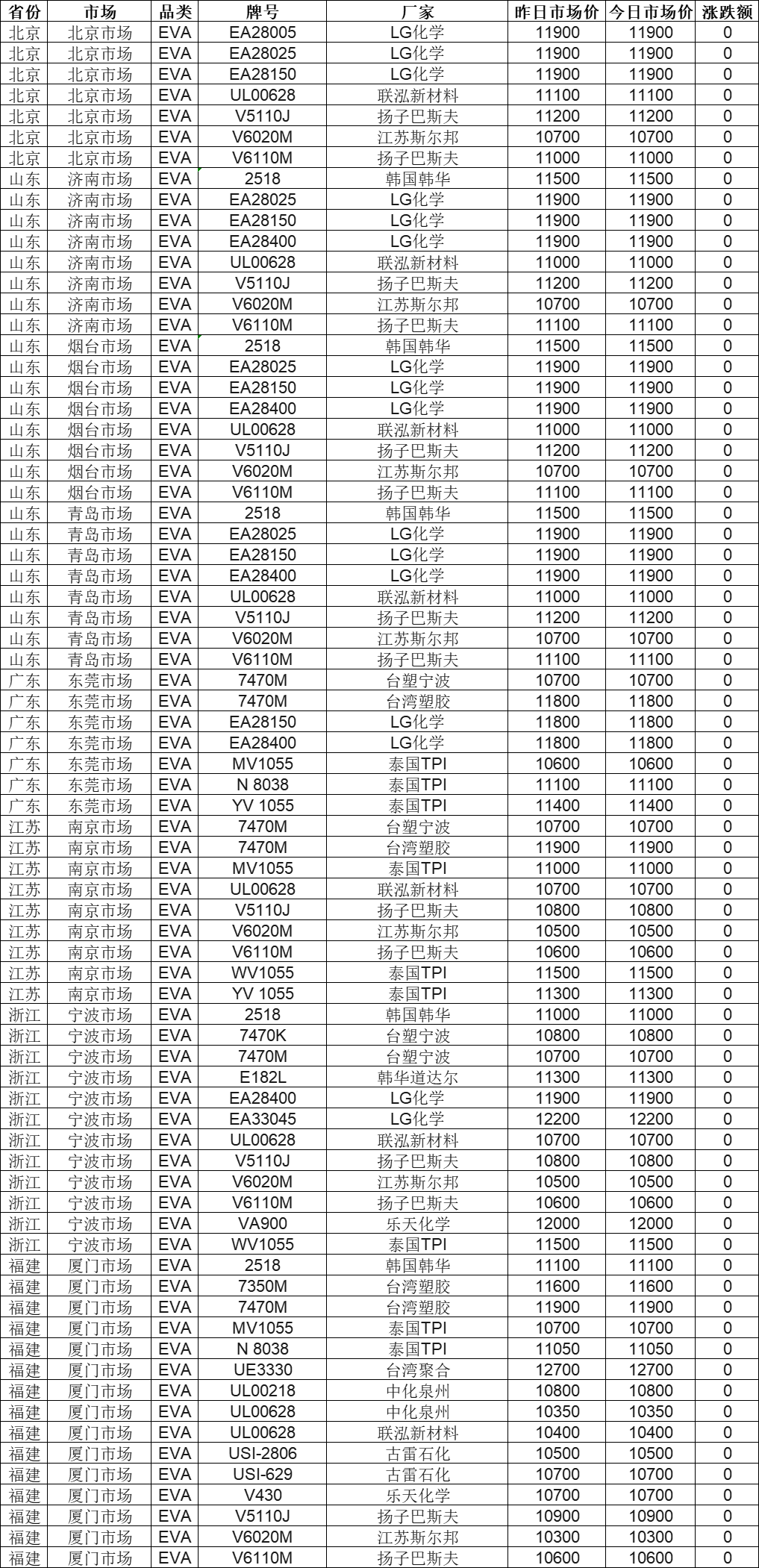 [EVA Morning New Price] October 17: EVA Market Remains Stable, Most Market Quotes Unchanged