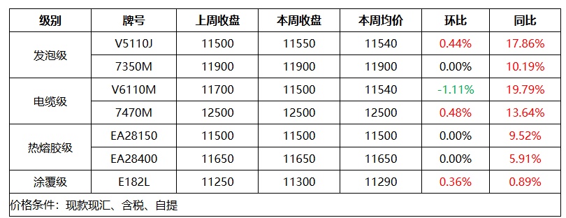 1. Market Review of the Week: EVA market prices exhibit weak consolidation.