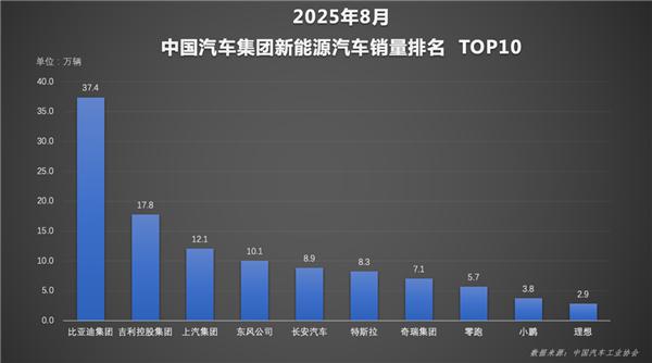 In terms of specific brands, amid the strong emergence of new energy and independent brands, BYD has retained its position as the sales champion among national car companies. Data shows that BYD sold 374,000 new energy vehicles in August, with cumulative sales from January to August reaching 2.864 million vehicles, marking a 23% year-on-year increase and securing a leading position in China Automotive Group's new energy rankings with a significant advantage.