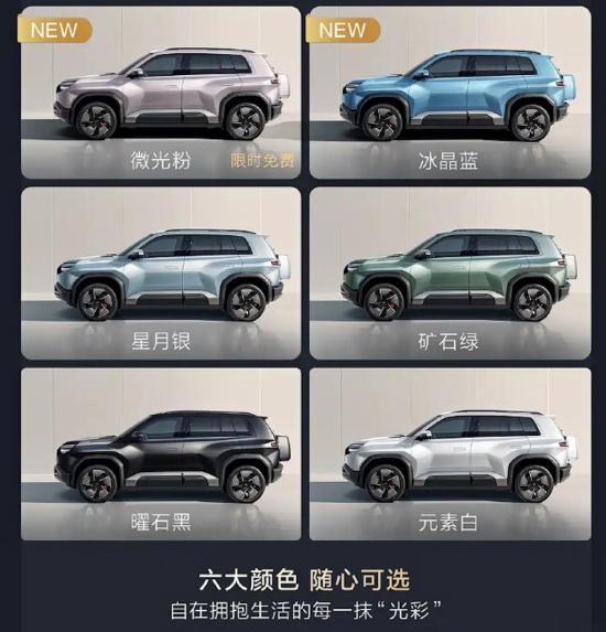 The new car features a segmented waistline and flared wheel arch design on the side, creating a strong muscular appearance. The rear shape is relatively square, with elongated taillight clusters echoing the daytime running lights, and the overhead storage box enhances the overall off-road capability of the vehicle. In addition, the new car also introduces two new paint colors: Microlight Pink and Ice Crystal Blue, further enriching consumer choices.