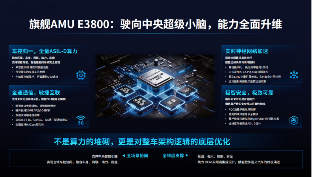 Among them, the flagship product E3800 integrates over 10 cores onto a single chip, incorporates aerospace-grade advanced embedded flash memory (delivering performance 10–20 times that of conventional eFlash), and features ultra-high-bandwidth Ethernet, an integrated multi-port switch, and a multi-tier network acceleration engine.