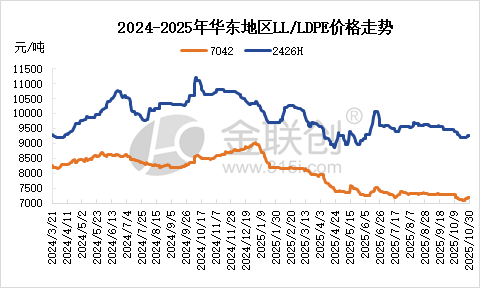 In October, the domestic polyethylene market in China saw an accelerated decline, with prices hitting new lows for the year. After the National Day holiday, petrochemical companies experienced a significant increase in inventory, leading to a strong willingness among businesses and traders to lower prices for sales. At the same time, the renewed escalation of trade tensions between China and the U.S., along with the easing of geopolitical risks in the Middle East, exerted downward pressure on the global oil market, further weakening market support. Regarding demand, although it is the peak season for polyethylene consumption and some industries, such as agricultural film and packaging, have increased their operating rates, the limited follow-up of new orders has led to a generally cautious attitude among end users, who primarily focus on essential purchases. By the end of October, with the introduction of the 14th Five-Year Plan, industry confidence rebounded somewhat, leading to a low-level rebound in plastic futures prices, with spot prices experiencing slight increases.