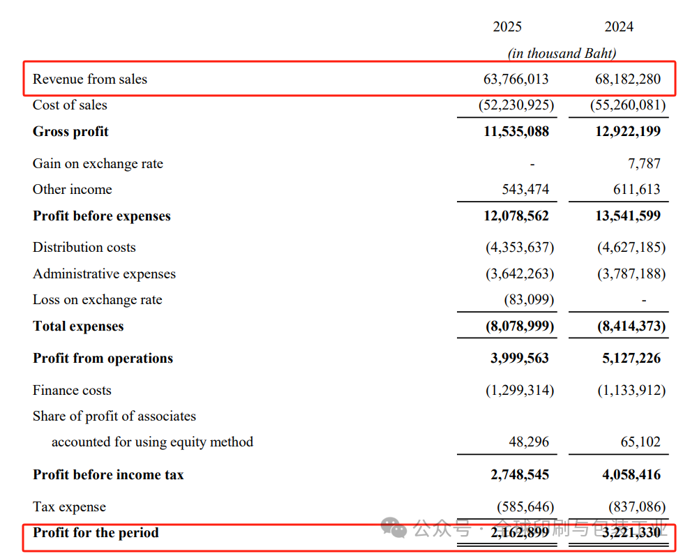 Recently, SCG Packaging released its business results for the first half of 2025 and the second quarter. Despite facing global economic uncertainty, SCGP demonstrated strong operational resilience in the first half of the year. Total sales revenue reached 63.766 billion baht (approximately 14 billion RMB), and achieved 2.163 billion baht.(Equivalent to approximately 476 million RMB)During the second quarter, the company also performed remarkably well, with total sales revenue reaching 31.557 billion Thai Baht and a reported profit of 1.01 billion Thai Baht for the period.