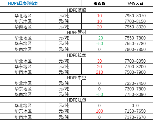 HDPE Prices Mostly Rise and Few Fall! September 30th National Major Regional HDPE Price Changes Overview