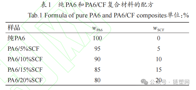 Table 1 shows the formulation of pure PA6 and PA6/CF composites. According to Table 1, weigh and mix PA6 and SCF in a high-speed mixer thoroughly; then, extrude and granulate using an extruder, with the temperature set at 180-280℃ in each zone of the extruder. The extruded material is cooled in a water tank and cut into 5mm pellets; then, it is dried in an oven at 80℃ for 6 hours; finally, it is molded by injection, with an injection temperature of 280℃ and a mold temperature of 90℃, and allowed to cool naturally to room temperature to produce samples of the required dimensions.