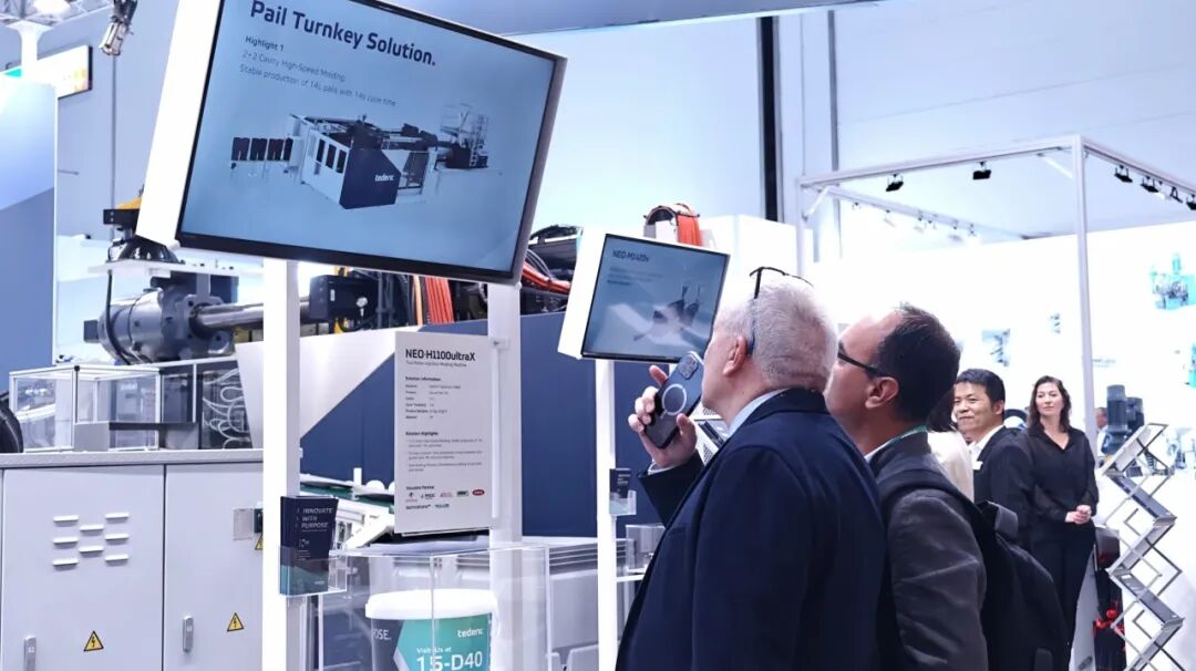 At the INCOE booth, a TedericNEO·E160The injection molding machine showcases hot injection technology and is connected in real-time with the Tederic booth. Through remote expert diagnostics and technical support, it presents the "equipment as a service" model, demonstrating efficient production and service capabilities empowered by digitalization.