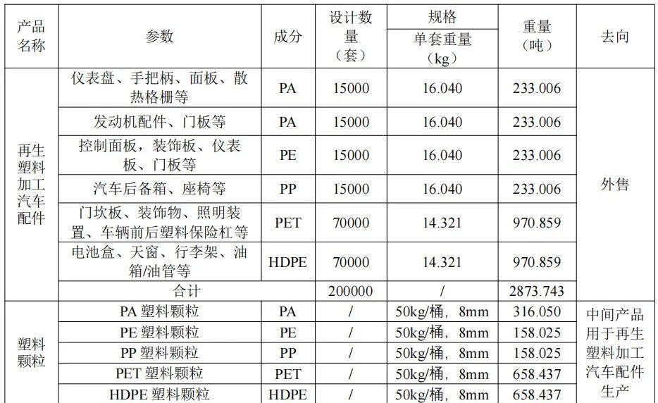 Project Name: Annual Production of 200,000 Sets of Recycled Plastic Processed Automotive Parts and Other Plastic Products Project