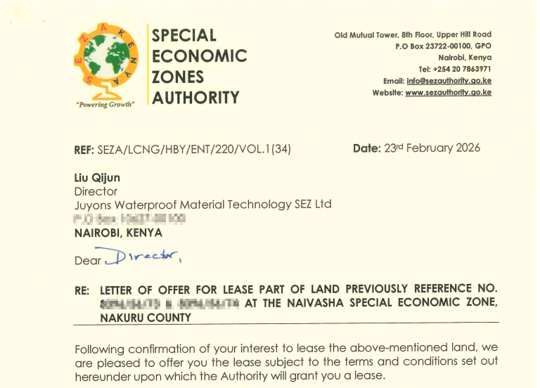 As a Chinese enterprise going global, Joyoung Waterproofing consistently adheres to the principles of high compliance, strong governance, and rigorous standards, ensuring the project progresses efficiently, orderly, and in a standardized and stable manner. The project has received high recognition and strong support from official institutions including the Kenya Special Economic Zones Authority (SEZA) and the Kenya Bureau of Standards. Both sides have reached a strong consensus on key issues such as boosting local employment, enhancing talent development, and promoting standardized industry practices. Relevant parties have explicitly stated their full support for Joyoung Waterproofing’s investment, construction, and long-term development in Kenya.