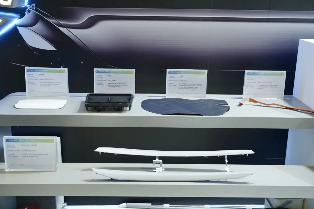 The concentrated presentation of aesthetic materials such as metallic silver, suede-effect surface materials, and other innovative technology applications. The integration of aesthetics and functionality attracts in-depth consultations from leading international automotive manufacturers.