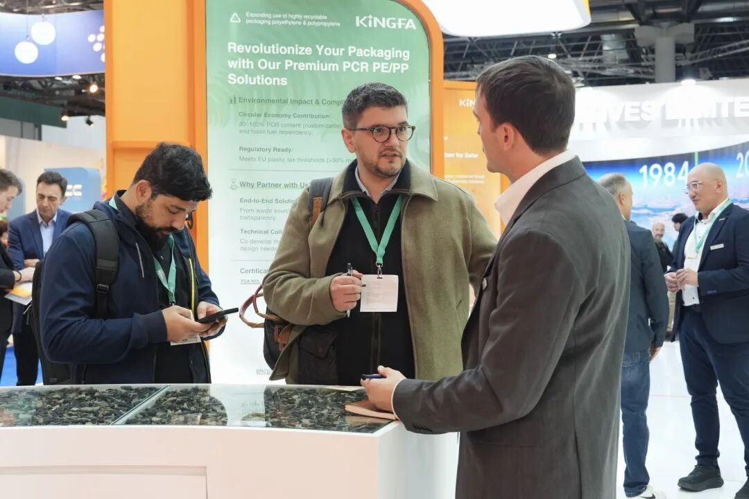 In the "Intelligent" Living Space Exhibition Area, Jinfat Technology showcased how high performance and sustainability can be seamlessly integrated into daily life, from fashionable home appliances to children's toys, from high-end beauty packaging to smart consumer electronics. Notably, its high-quality PCR solutions, with outstanding color consistency and surface gloss, attracted the attention of numerous clients in the packaging and consumer goods industries, proving that eco-friendly materials can also possess a high-end feel.