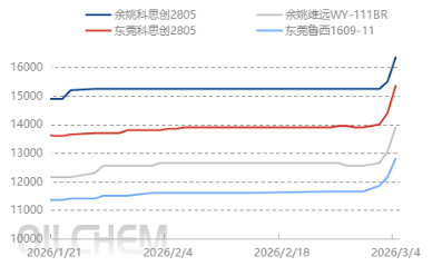 Today, the domestic polycarbonate (PC) market in China surged significantly. By the close of trading this afternoon, the mainstream trading reference price for low-end injection-grade PC in the East China region stood at RMB 13,200–14,400 per ton, while that for mid-to-high-end grades ranged from RMB 16,000–16,350 per ton. The domestic average price increased by over RMB 500 per ton compared to yesterday. Most domestic PC producers have not announced any new ex-factory price adjustments; only one PC plant in Shandong Province raised its posted ex-factory price by RMB 500 per ton. In the spot market, prices accelerated upward in both East and South China. External market sentiment, coupled with an overall upward trend across the supply chain, has led to chaotic quotation practices among holders of inventory; some have suspended quotations entirely, awaiting further market developments. Downstream buyers are fulfilling only minimal, essential demand, with limited transactions occurring at the elevated price levels.