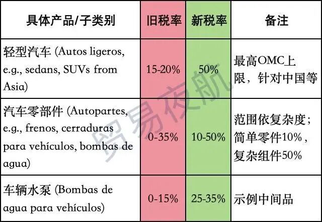 ⚠️ Objective: Protect local industries (such as automotive and textiles), increase local content ratio to over 50%, attract foreign investment, support SME financing, and provide leverage for the 2026 USMCA (United States-Mexico-Canada Agreement) review negotiations (prevent Chinese goods from being transshipped through Mexico).