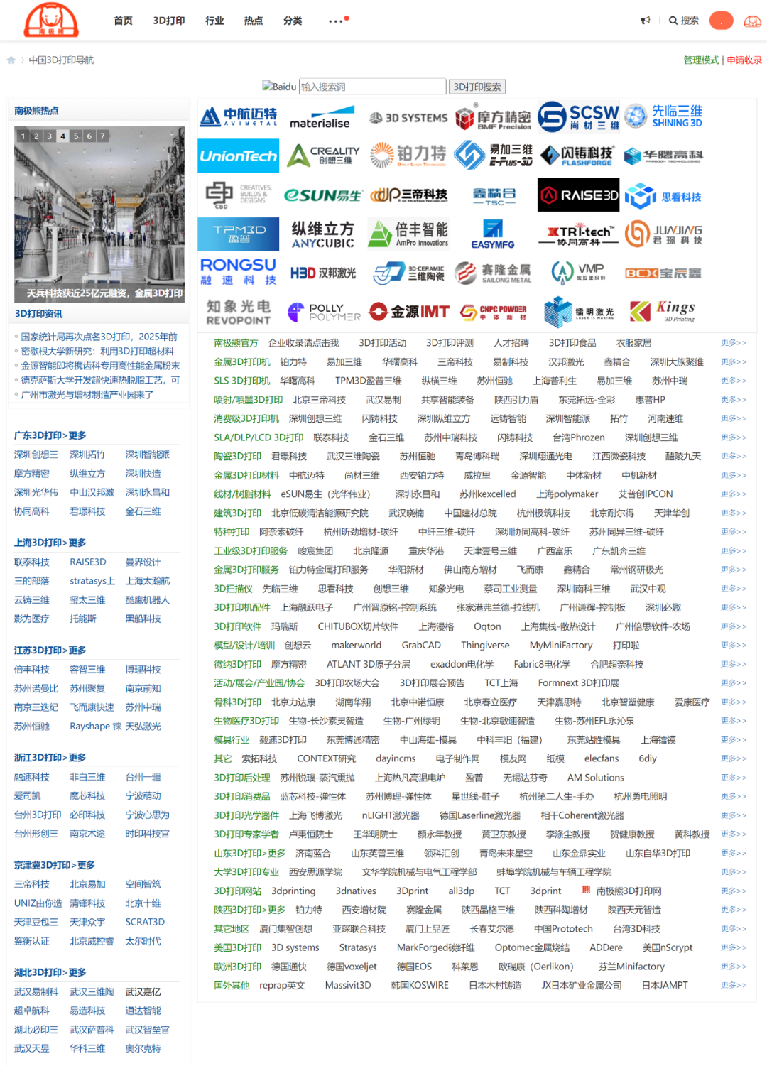 In China's 3D printing industry directory, Antarctic Bear has already included a large number of consumer-grade and industrial-grade manufacturers, with the total exceeding 2,000.