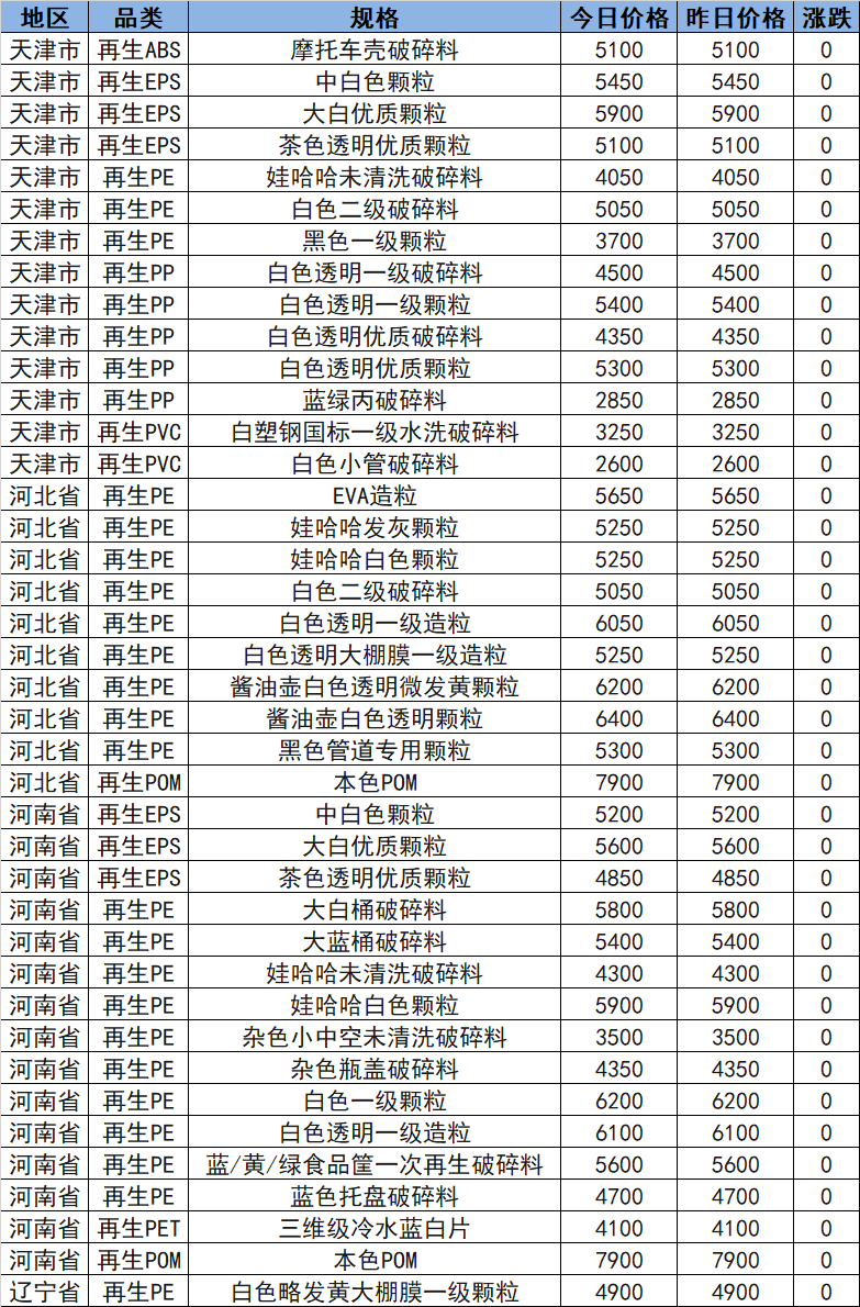 North China Recycled Material Market Stays Stable, Henan Recycled PE Priced at 3500-6200