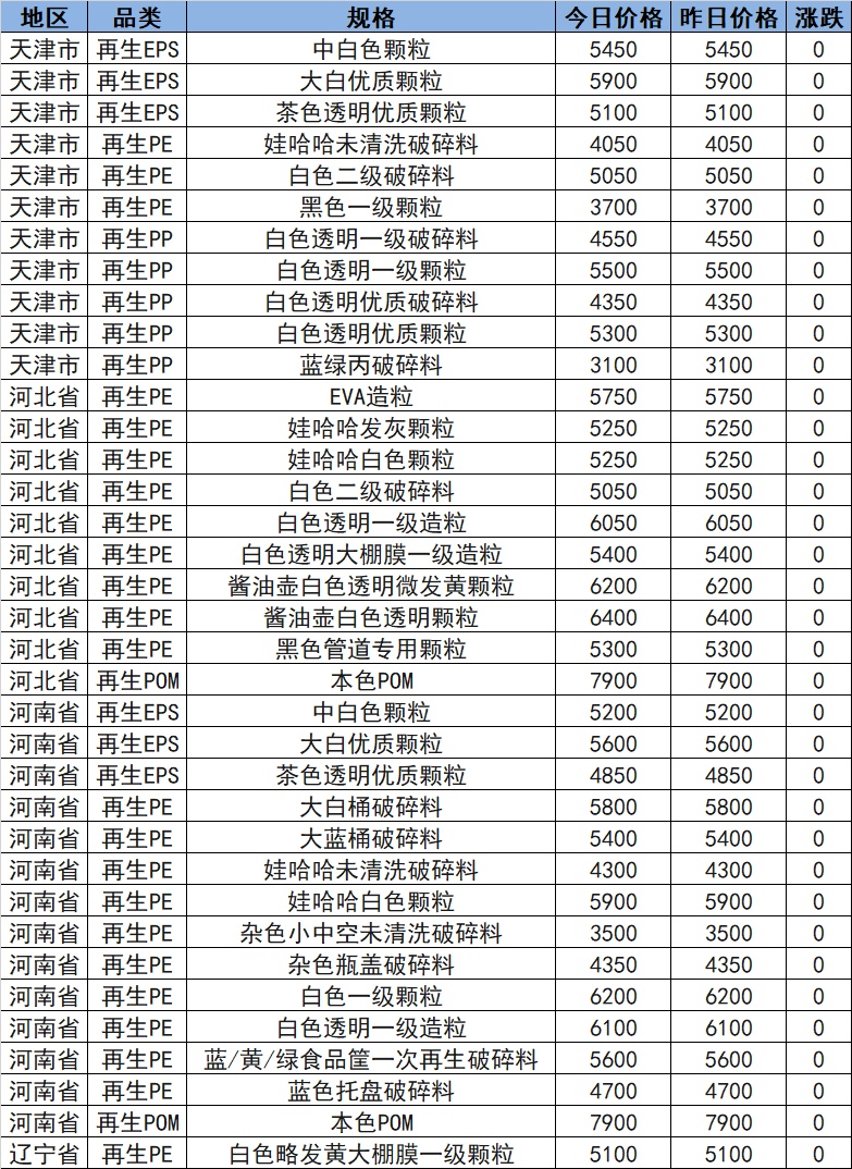 North China Recycled Material Market Steady, Tianjin Recycled PP Priced at 3100-5500