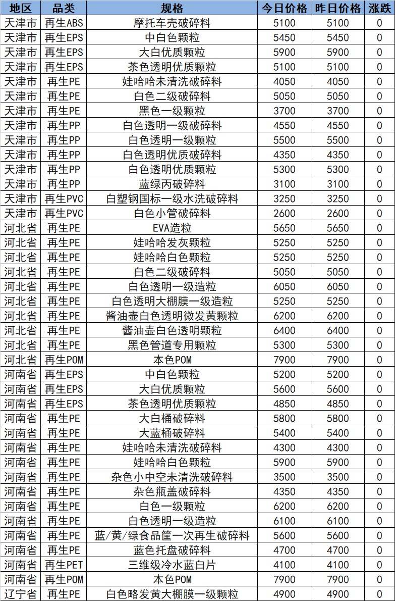 Summary: Morning Prices for Recycled Plastics Market in North China on October 16! The recycled market in North China remains stable, with Hebei PE quoted at 5050-6400; Tianjin recycled PP at 3100-5500; Henan recycled PE at 3500-6200; Liaoning recycled PE at 4900. The downstream procurement pace in the market is slow, and some holders are lowering their offers to promote transactions; however, the supply of raw materials remains tight, keeping prices firm. Under this industrial chain game, the short-term prices of recycled granules remain stable.