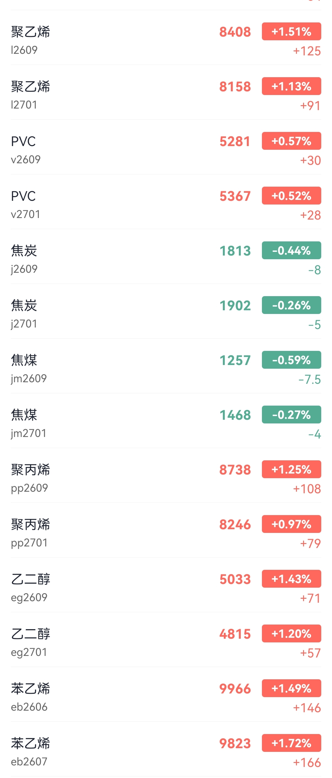 Plastic quoted at 8408 yuan/ton, up 1.51% from the previous trading day.