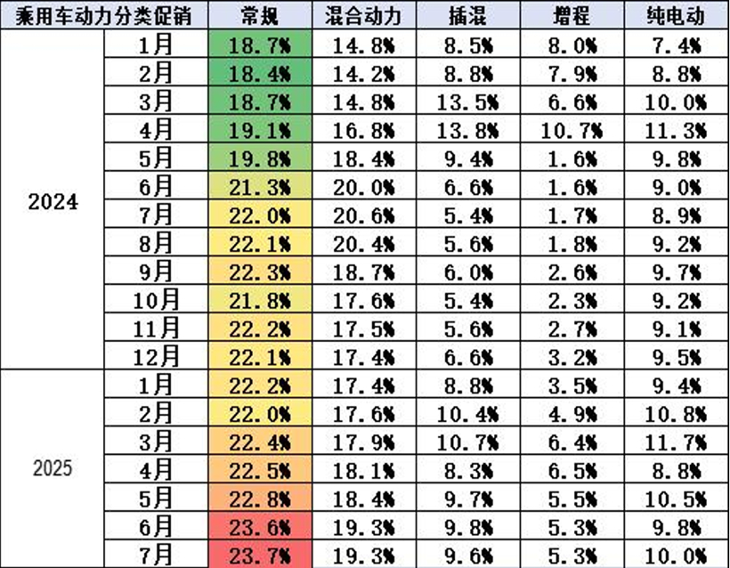 According to data from the China Passenger Car Association, 23 car models saw price reductions this August, which is lower than the same period last year. However, the promotional intensity for traditional fuel vehicles remained stable at 22.9%, higher than the level in the same period last year. Among the 23 models, there are 5 fuel vehicles, with an arithmetic average price reduction of 11,000 RMB, reaching a discount rate of 8.4%. Among these, the promotional efforts for mainstream joint venture fuel vehicles have gradually reached a high of 22%, higher than the 18.4% promotional intensity for independent fuel vehicles.